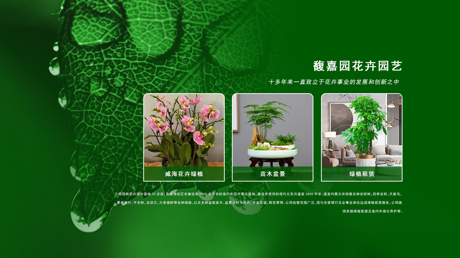 公司現有花卉苗木基地30多畝,在威海經區老集設有6000多平米的室內外花卉展示基地,建設并使用的現代化花卉溫室3800平米